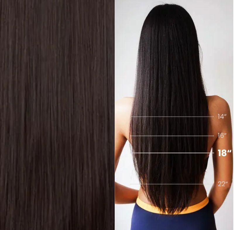 Our brown halo hair extensions are available in multiple lengths, from the subtle 14-inch to the dramatic 22-inch. To decide which length suits you best: